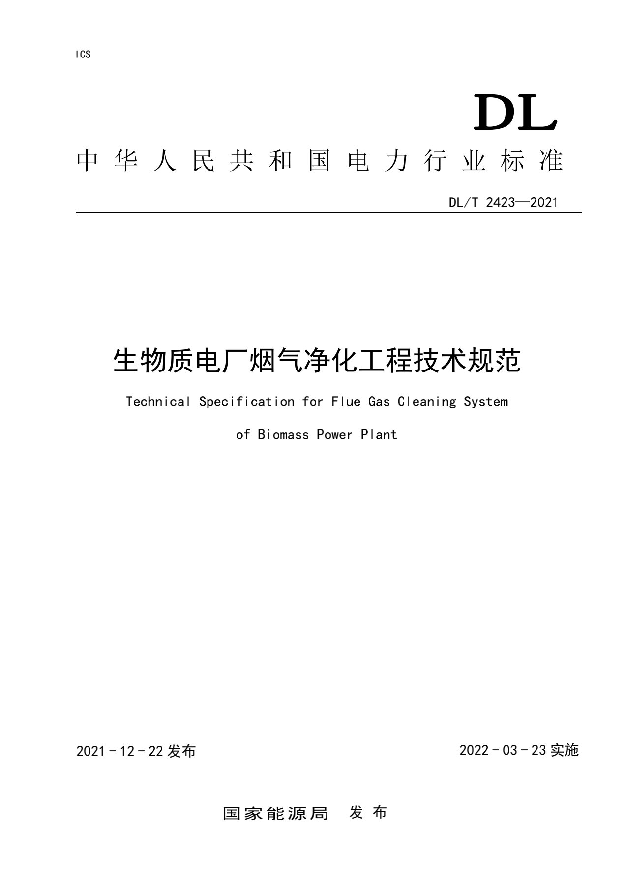 《生物質電廠煙氣凈化工程技術規范》 點擊下載