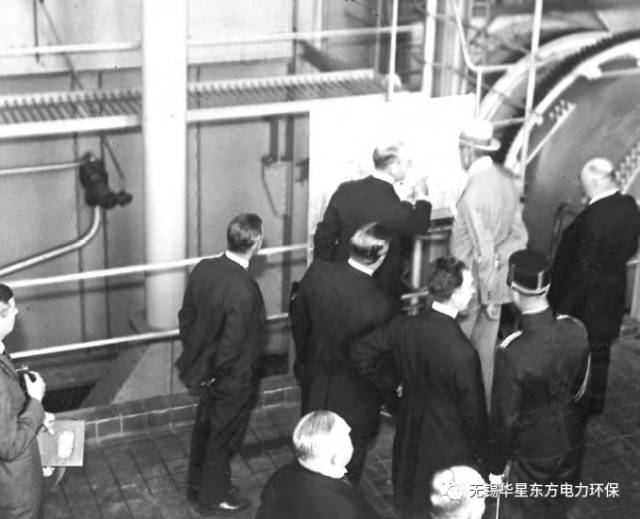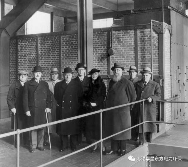 克里斯蒂安五世國王(灰西裝)于1934年8月14日參觀了aarhus焚燒廠,他右邊是市長。