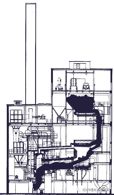 回轉窯出口的煙氣大約有1000度左右,通過巴威的鍋爐來儲熱,回轉窯產生的灰只占到垃圾重量的2%。為了確保尾氣干凈,鍋爐和省煤器裝備了“煙灰袋”(估計是如今布袋除塵的鼻祖了吧)。在省煤器后,一個專用的煙氣凈化裝置捕捉了大約80%的飛灰,所以煙囪排放是不是黑煙,固體顆粒物較少。