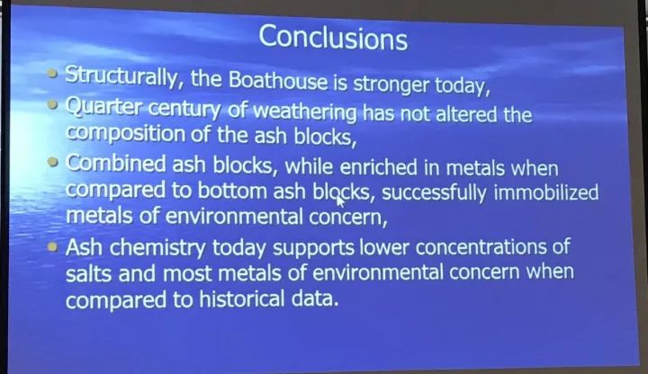 這位教授的演講題目很有趣,叫“船屋”。他講述了自己在年輕時候從垃圾焚燒廠弄回來一些垃圾灰制成的磚,用這些磚制作了一個小房間,這個小房間是用于存放他出去游玩的一艘小船的。為了檢驗這些垃圾灰是否對人存在傷害,在這個幾十年中間,這位老教授會定期從墻上取樣分析這些灰的成分變化,并將這些數(shù)據(jù)展現(xiàn)在我們面前。