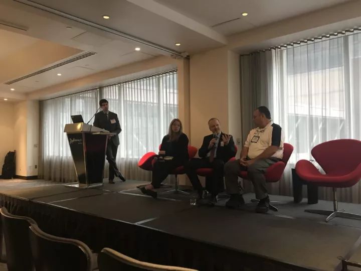 老美的會議形式我覺得比國內(nèi)的會議形式略有不同。通常一個議題由一位大咖發(fā)言,同時會有3-4位大咖就坐一邊,等發(fā)言的大咖結束后,會共同探討這個話題,坐在一邊的大咖發(fā)言較為簡短,他們也會一起回復在座聽眾提出的問題。這種形式下,我認為其交互性更強一些,而分享的觀點也會持不同的見解,會帶給聽眾更多角度的思考。