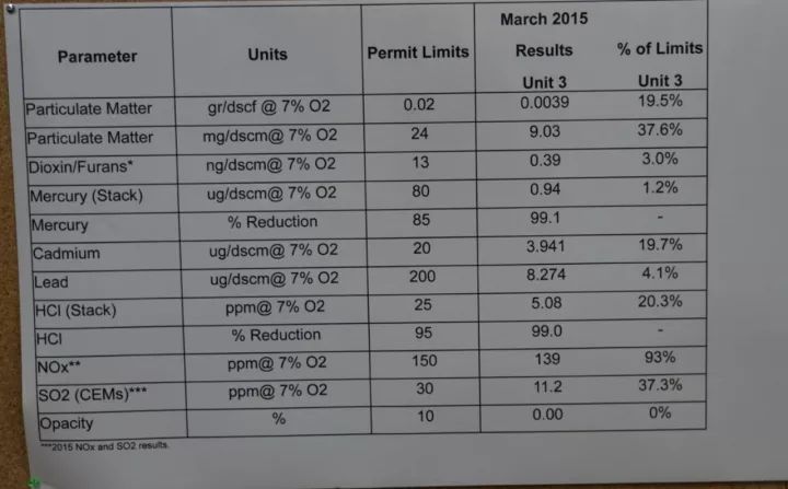 參觀的同時,我們交流了一下大致的排放指標,由于時間久了具體排放限值數(shù)據(jù)記不清了,但印象中其排放指標一般,甚至高于國內(nèi)現(xiàn)行的18485標準。回國后我查閱了相關資料,發(fā)現(xiàn)明尼阿波利斯的地方標準有所提高。其依據(jù)是我查閱了一個Olmsted焚燒廠3號線的環(huán)評報告,并注意到Olmsted的1.2號線的排放標準明顯寬于3號線的排放標準,有興趣的同志可以往上翻幾頁看看Olmsted廠的排放標準。