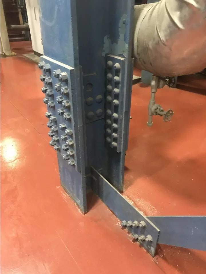 在參觀的閑暇之余,出于對鋼結構的關心,我們還看了一下他們的結構件的制作質(zhì)量。老美的鋼結構清一色是高強度螺栓連接的高級貨,而我們國內(nèi)大部分煙氣廠商為了控制成本,采用焊接,定位螺栓+焊接的項目則較多。