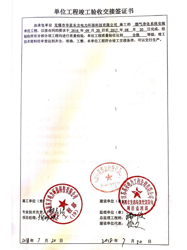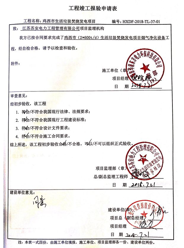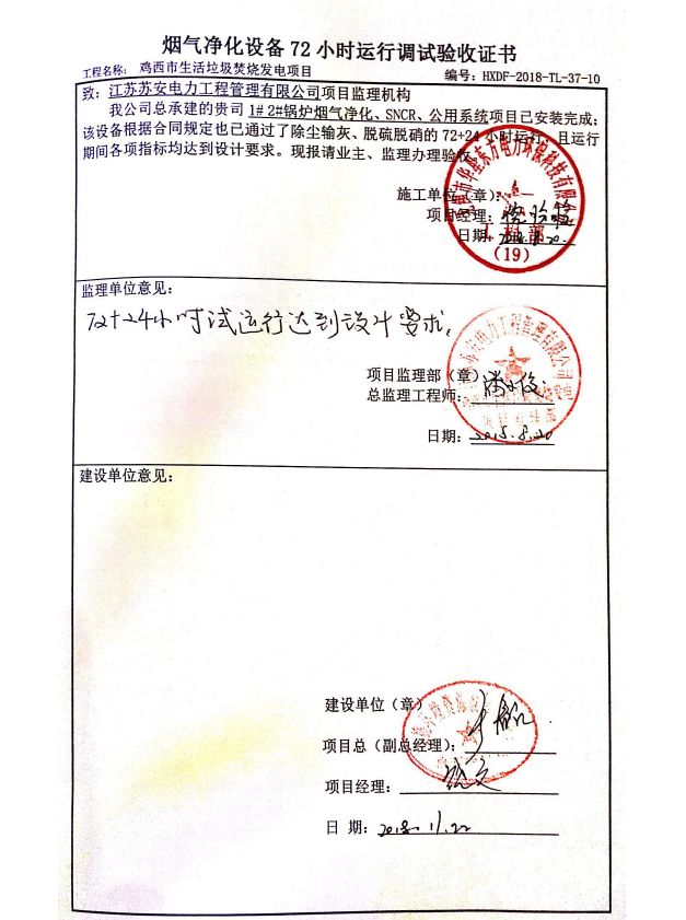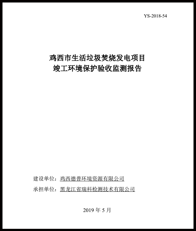 我公司承建的雞西市生活垃圾焚燒發電項目于2019年5月通過環保驗收,現該項目運行穩定,各項參數符合設計要求。