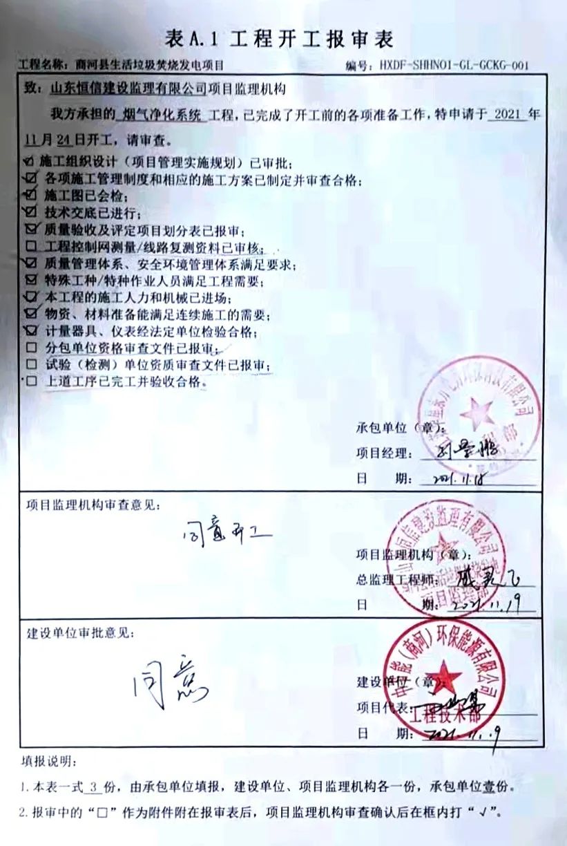 我公司承建的山東省商河縣生活垃圾焚燒發電項目煙氣凈化工程于2021年11月19日開工建設。