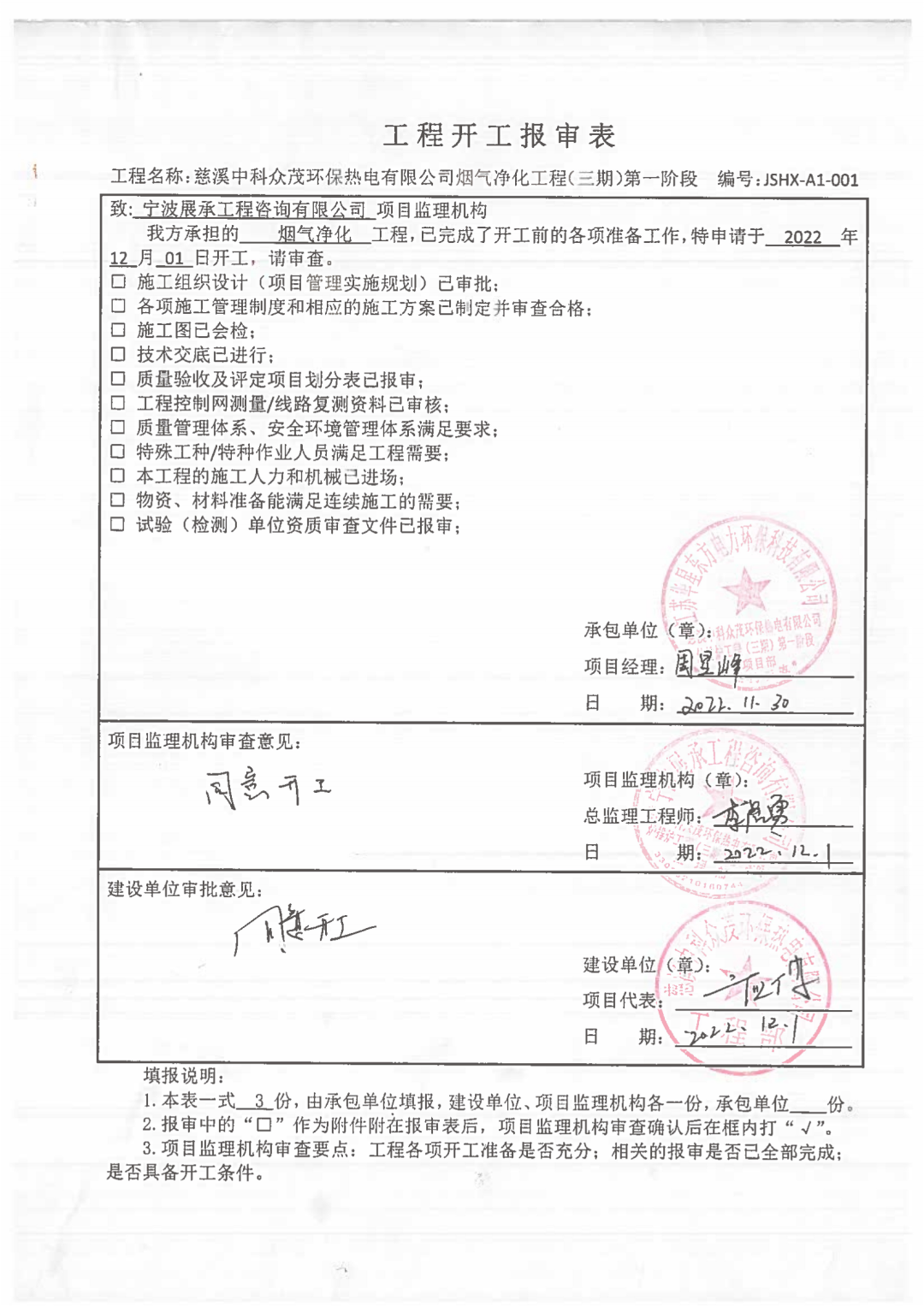 我公司承建的浙江省寧波市慈溪生活垃圾焚燒發電項目三期煙氣凈化工程于2022年11月30日開工建設。 The third construction phase of flue gas cleaning project of the Cixi domestic waste incineration power generation project in Ningbo City, Zhejiang Province, undertaken by our company, commenced its construction work on November 30, 2022.