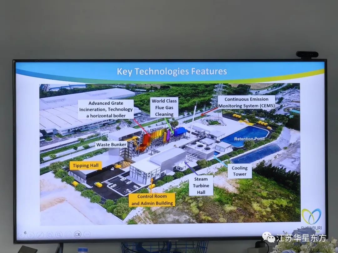 10月27日,華星東方與其他參會(huì)嘉賓一起參觀了春武里府清潔能源垃圾發(fā)電廠項(xiàng)目(Chonburi Clean Energy Power Plant (CCE)),該項(xiàng)目由WHA,Veolia, GPSC共同投資建設(shè),總投資18億泰銖(約3.7億RMB),于2019年11月7日投入運(yùn)營(yíng),建設(shè)規(guī)模為日處理垃圾320噸,年焚燒垃圾11萬(wàn)噸,共發(fā)電8.63MW。