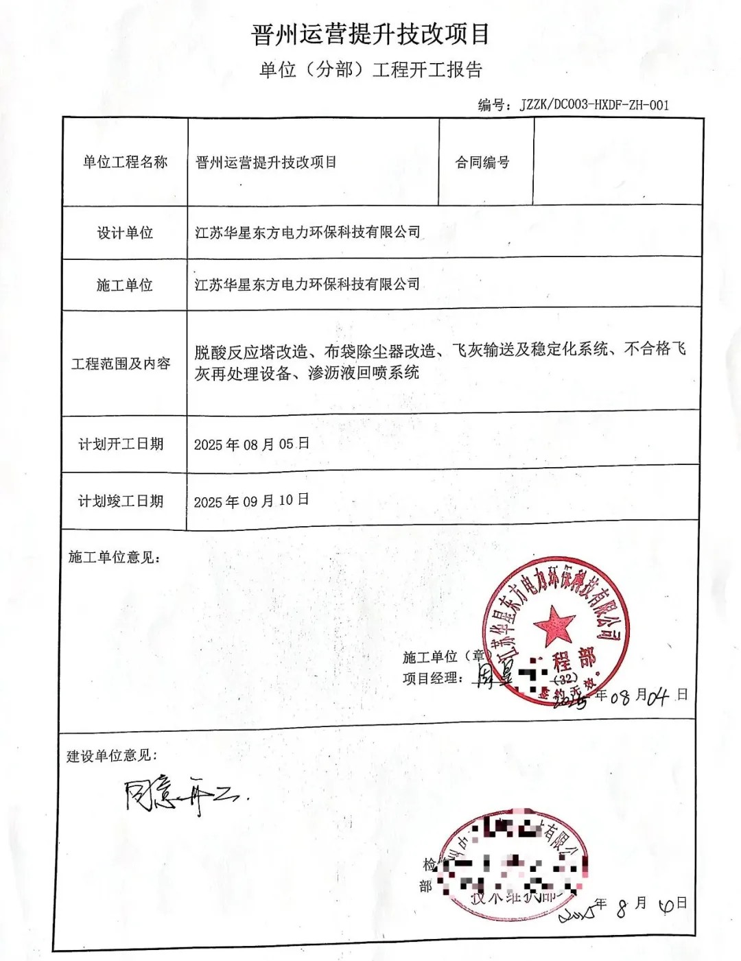 華星東方承建的河北省石家莊市晉州市生活垃圾焚燒發(fā)電提升技改項(xiàng)目煙氣凈化工程于2025年08月05號(hào)開(kāi)工建設(shè),于08月27號(hào)已安裝完成通過(guò)初步驗(yàn)收。
