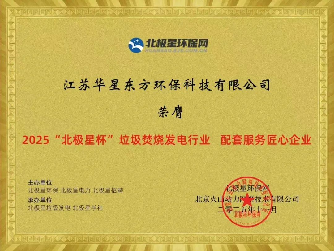 2025年9月,江蘇華星東方受邀參與“北極星杯”2025年度垃圾焚燒發電行業評選盛典。此次評選歷時逾月,歷經緊張投票、專家評審及評選委員會綜合考量,我司最終在眾多入圍企業中嶄露頭角。自2020年度(首屆)垃圾焚燒發電行業評選活動獲獎以來,江蘇華星東方已連續六屆榮膺“配套服務匠心企業”殊榮!