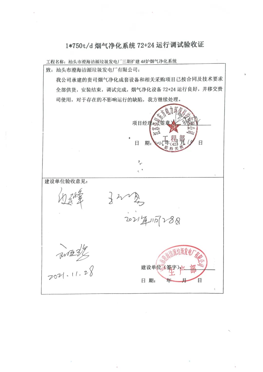 The FGC project contracted by Huaxing-east for phase III of Chenghai Jieyuan waste-to-energy plant in Shantou, Guangdong passed 72+24 hours trial operation on Sept. 10, 2021.