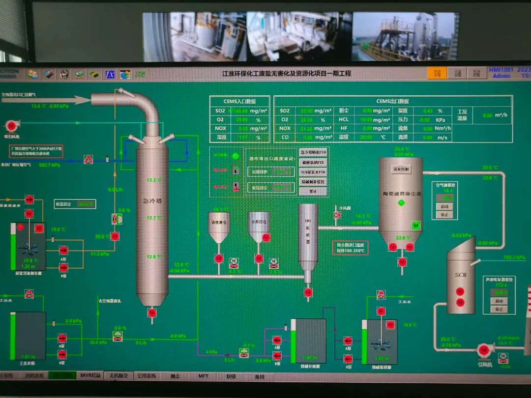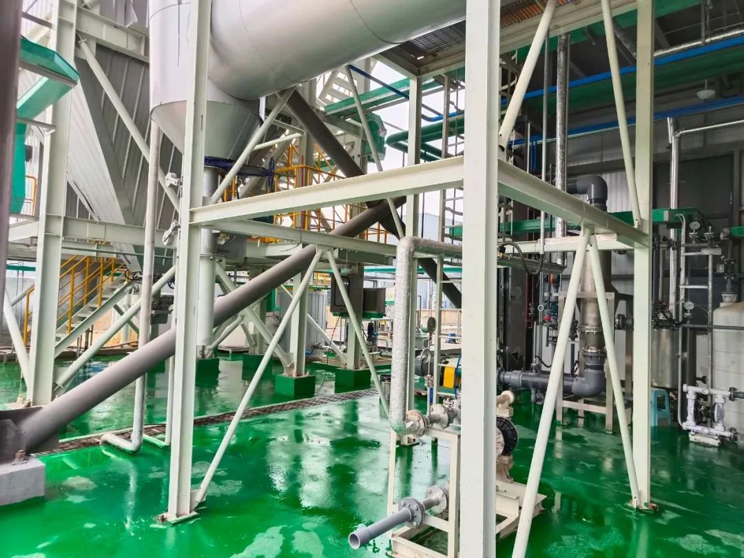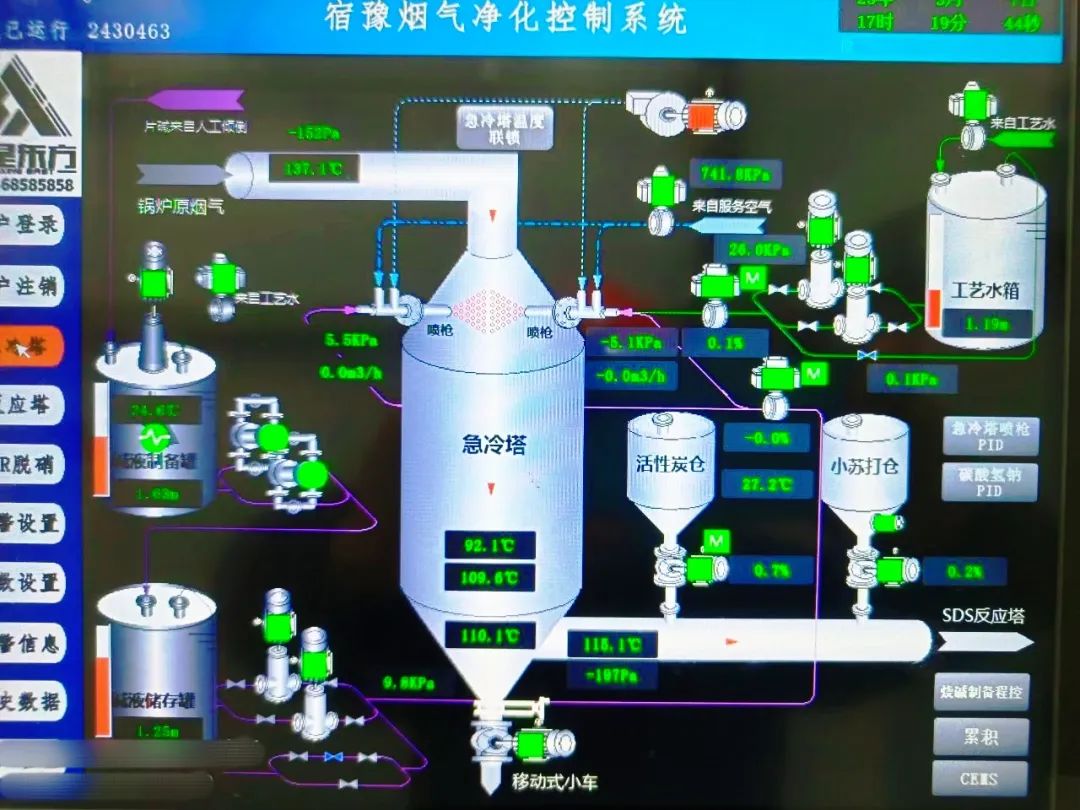 The plant FGC applied the process of "heat exchanger gas-collection + quench reaction tower + SDS sodium bicarbonate desulfurization + ceramic filter + SCR denitrification + ID fan". It is an EPC project of Huaxing. The FGC system applied new technologies such as ceramic filter cartridge, low-temperature catalytic decomposition of dioxins, and sodium bicarbonate dry process,  which are independently developed by Huaxing.