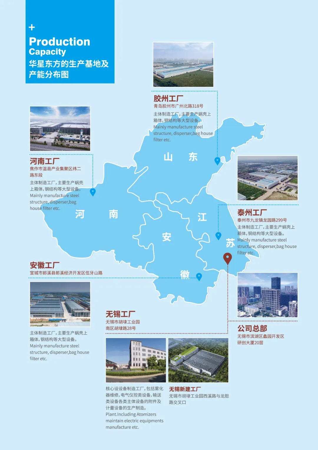 Following Jiangsu Huaxing-east's investment in steel and catalyst fabrication machinary on the "Anhui Zhongyi EP" platform, the Wuxi Phase II factory, which focuses on stainless steel, precision machining, and electronic control products, will also gradually reach production in September, 2023. Huaxing-east relocated its engineering and design dept. to Liyuan Development Zone in CBD Wuxi, gradually building a production structure with Liyuan Development Zone as the design center, Wuxi factory as precision processing, Xuancheng factory as catalyst & new materials, and Jiaozuo / Qingdao / Taizhou as steel structure fabrication. The rational distribution of production capacity provides the best choice and optimal cost control layout for the new round of county level FGC demands.
