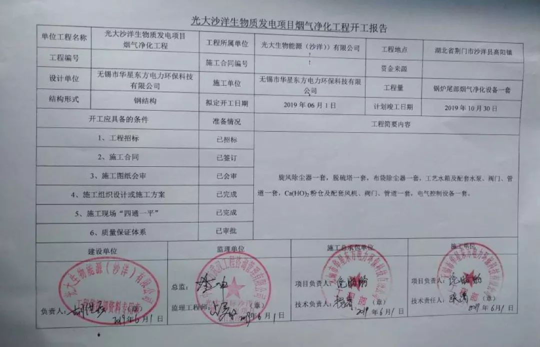 我公司承建的光大沙洋生物質(zhì)發(fā)電項(xiàng)目煙氣凈化工程于2019年6月1日結(jié)構(gòu)封頂,主體已完成,現(xiàn)已進(jìn)入附屬設(shè)備管道安裝環(huán)節(jié)。